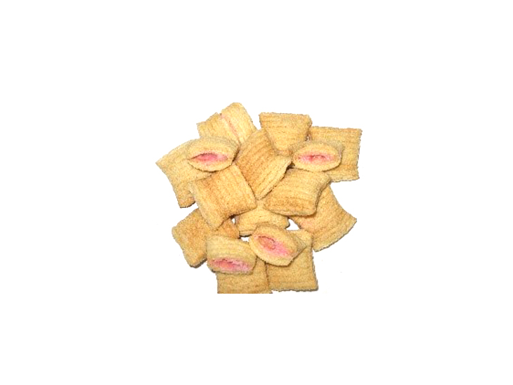 Cortador horizontal especial para produtos recheados. Esse equipamento é construído em aço inoxidável e realiza o corte dos snacks em forma retangular ou tubular, na medida estipulada pelo cliente.