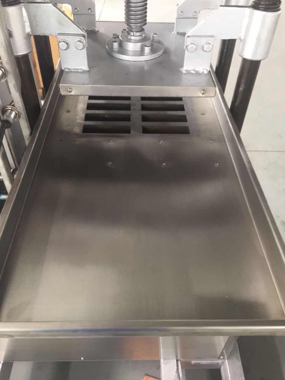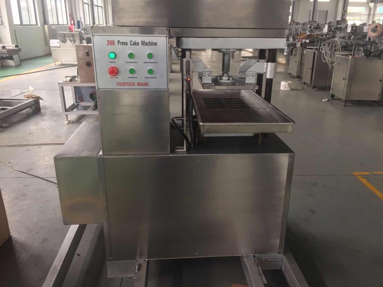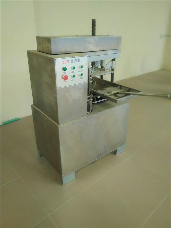 Máquina moldadora semi-automática com sistema de pressão para fazer paçoquinha. Possui estampa retangular e é construída em aço inoxidável.